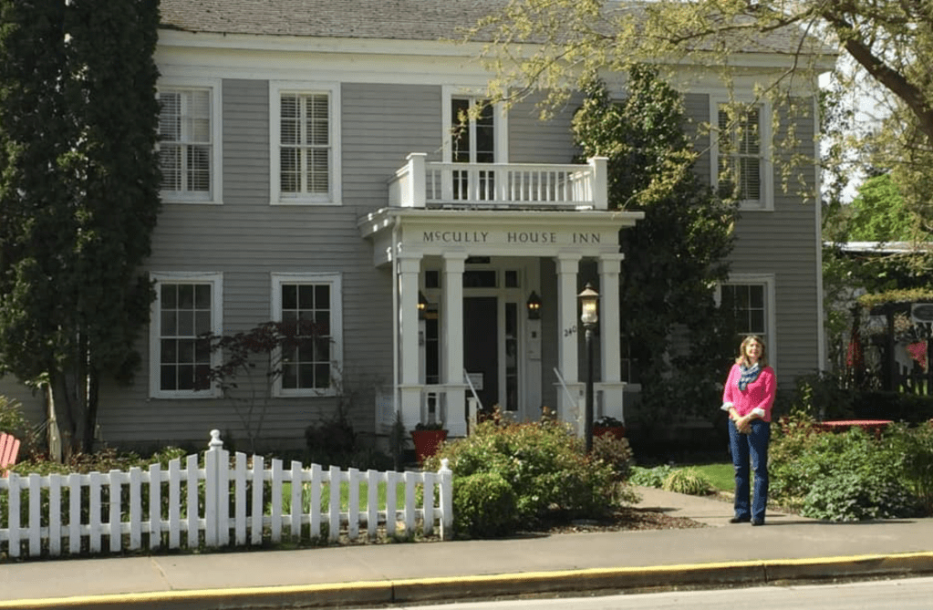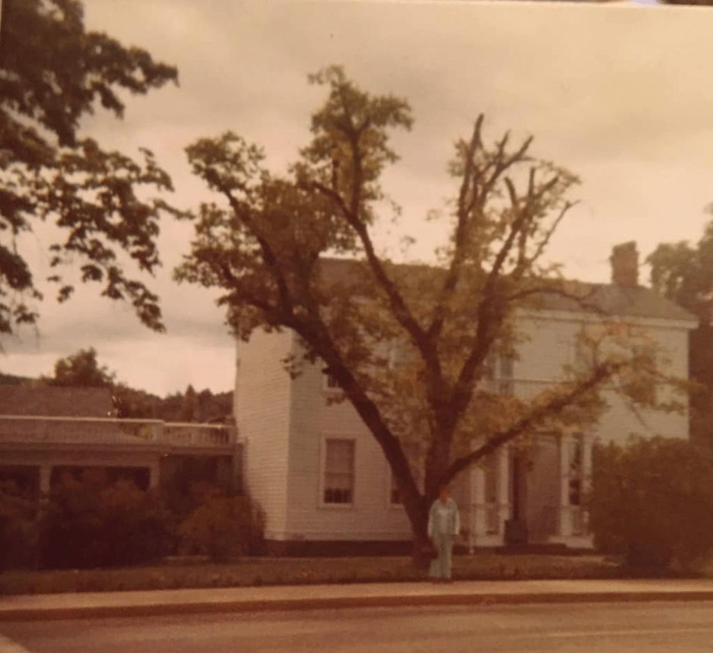 The next photo shared is a picture of Nancy, granddaughter of Helen standing in front of the same house in 2017. I plan to visit the house this May and will take another picture. The house is now a fancy Bed and Breakfast with its own web site. https://mccullyhouseinn.com The house has survived and is doing well.