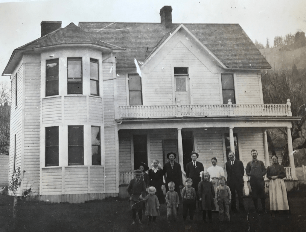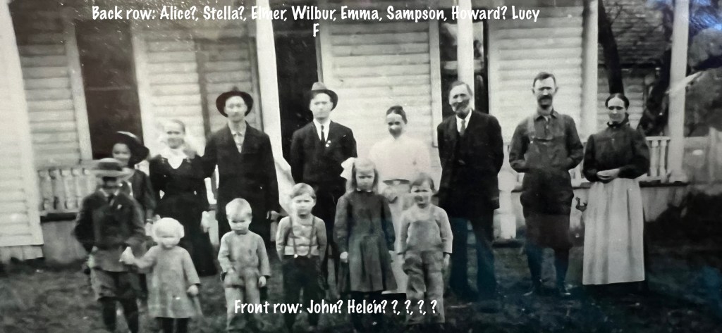 There are three other family photos that still are not labeled. The photo I chose next had four questions I wanted to answer:1. When was it taken? 2. How could my dirt poor family able to live in such a grand house? 3. Who were each of the fourteen people shown? 4. Whatever happened to that house? I am guessing the photo of the Swagerty family was 1910ish photo of the Sampson and Emma Swagerty family standing in front of a large home in Oregon. After checking census and finding all of the children, I received a better idea of the possible people in the photo. I also noticed this time when I read through the census that the family was renting this house. My grandfather Elmer Swagerty is always easy to identify. He has a look that did not change much from when he was a child to when he was an adult. Judging by age I could make a good guess that the young man next to him was his brother Wilbur. I also can identify their parents Sampson and Emma Swagerty based on comparing them by approximate age and previous pictures. There are 14 individuals in the pose and I can only identify four of them. I need help.