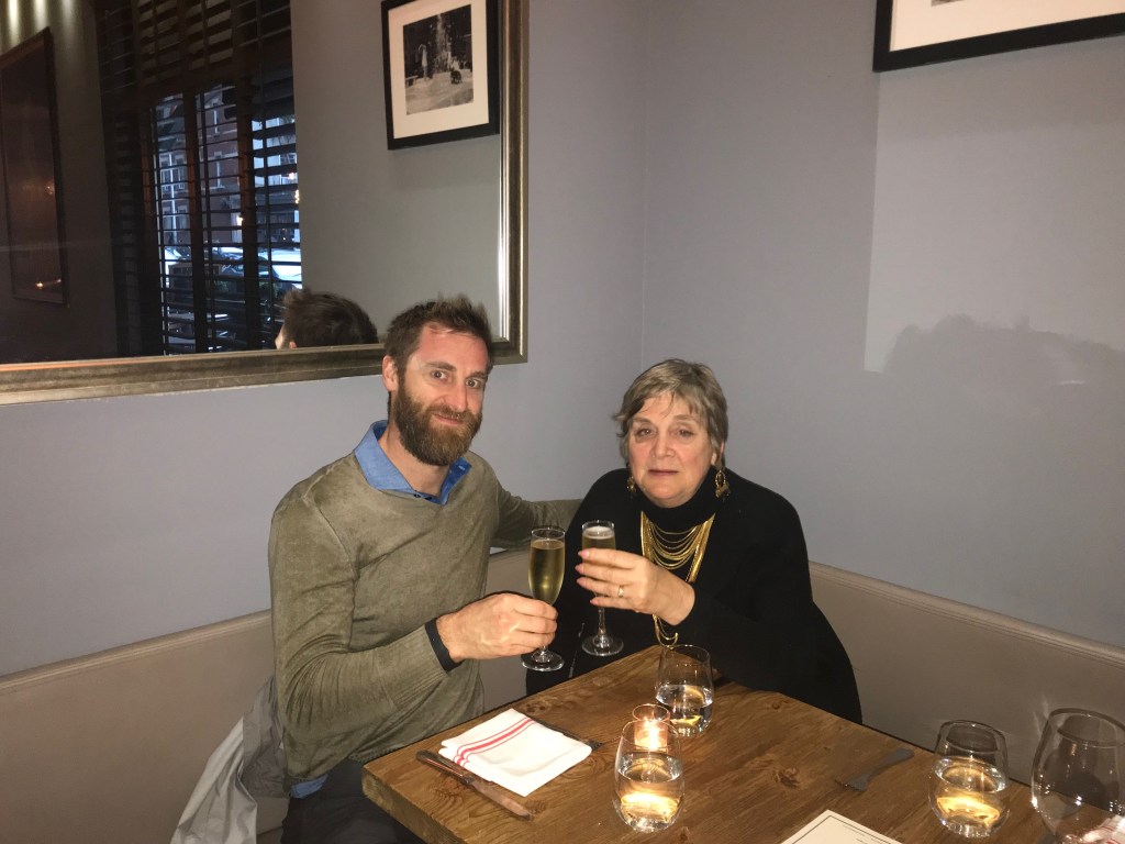 After a very special Mother’s Day celebration Ian, Brad, Ginny and I went on to the theatre to watch our last play. We sat center in the fifth row to watch To Kill A Mockingbird. Jeff Daniels was staring as Atticus Finch and Aaron Sorkin had rewritten the play. It was set in 1936 but certainly resonated to our present times. Ginny went to her hotel room and Ian went on back to his apartment. Brad and I met up at a small quiet wine bar in the neighborhood and had a light dinner consisting of a cheese plate and a meat plate with a bit of bubbly. Our conversations topped off a wonderful day.