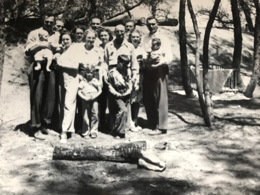 When Grant, my youngest sibling, was still a baby, we went camping to Big Basin State Park with my parents and fraternal grandparents. The original plan was to leave the baby with Grandpa and Grandma in Escalon. Grandpa had a better idea. He decided he and Grandma would come with us. He promised to help. This was when Mom rolled her eyes.