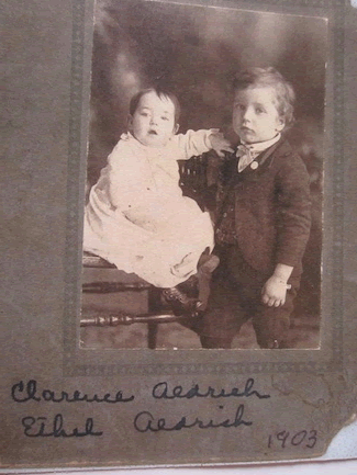 When Ethel was 3 years old and Clarence was 5 years old they went next door to visit Grandma Shove. Grandma was sitting in her rocking chair on the front porch and the children couldn’t get her to talk. They started to leave and Grandpa Shove came around from behind the house and asked why they were leaving so soon. They said, “Grandma won’t talk to us.” Grandpa knew something was wrong and found that Grandma had died in her rocker.