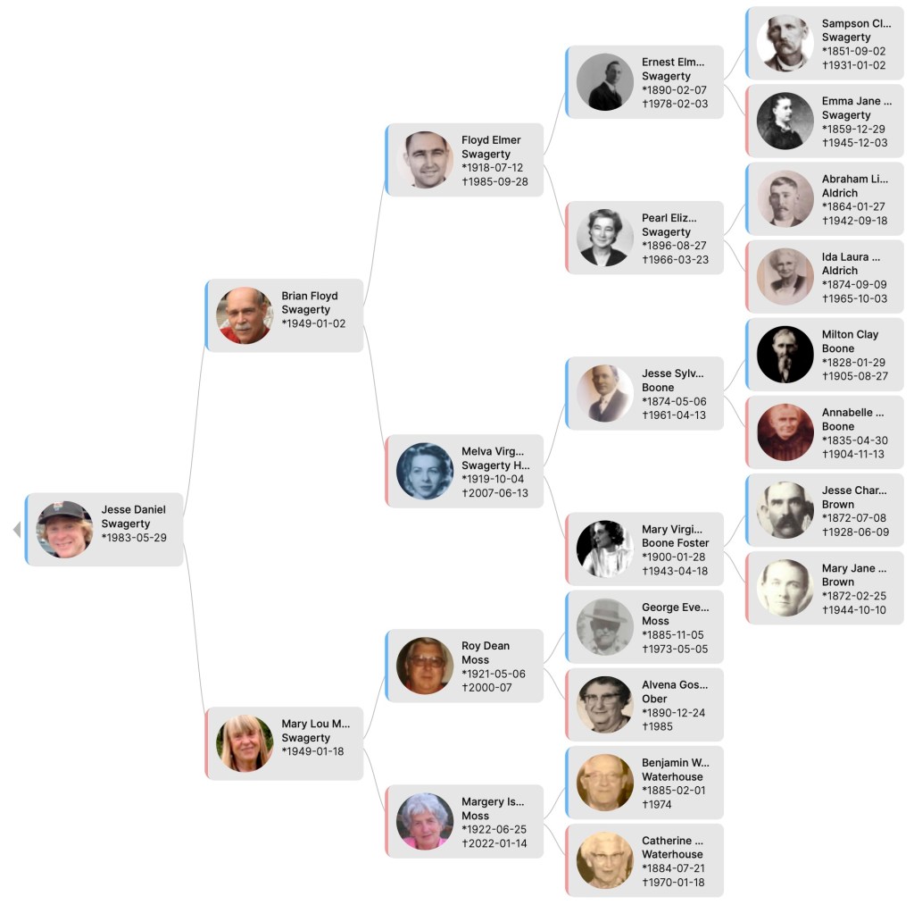 Jesse Daniel Swagerty’s Family Tree Back to Brian & Mary Lou Swagerty Family Trees Back to Swagerty Family Trees Back to Family Trees Share this: Click to share on X (Opens in new window) X Click to share on Facebook (Opens in new window) Facebook Like Loading...