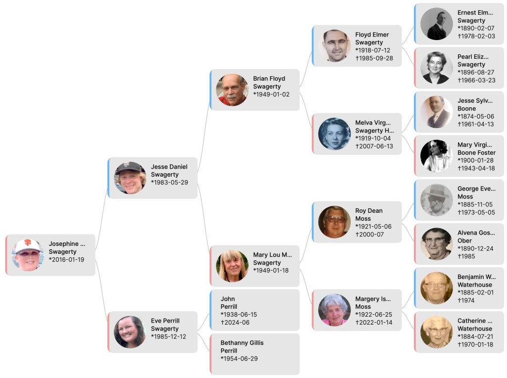 Josephine Pearl Istelle Swagerty’s Family Tree Back to Brian & Mary Lou Swagerty Family Trees Back to Swagerty Family Trees Back to Family Trees Share this: Click to share on X (Opens in new window) X Click to share on Facebook (Opens in new window) Facebook Like Loading...