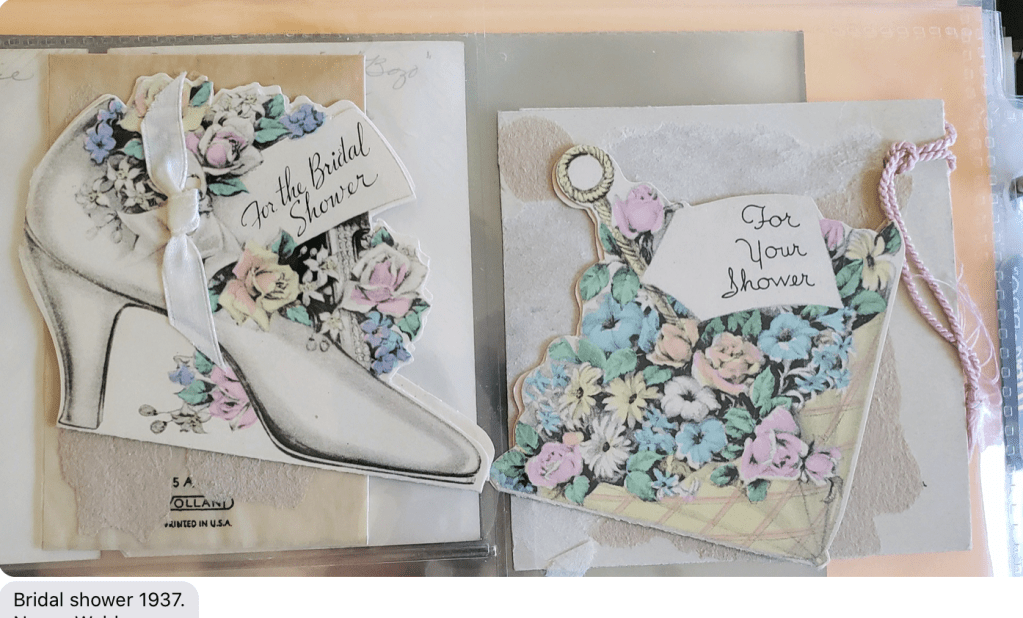 What a commotion was set-off by setting the date. My, all the showers! There was one at Betty Rae Stone’s. All the youth groups of our church were invited. That was a very large group. Mother’s circle, a group of ladies at the church, gave one and a Friendship Club of hers had one for me. Ella Burton, the wife of Harry’s oldest brother, gave a shower and invited all of the Burton relatives, some relatives and friends of mine as well. Ada gave me one; she was going to nursing school at the time and had her fellow students as guests. My, all the lovely things! And then the wedding presents started coming. There were so many gifts we had so few things to purchase to set up housekeeping. That was a blessing because we would have had to have gone without because there was so little besides the absolute necessities.