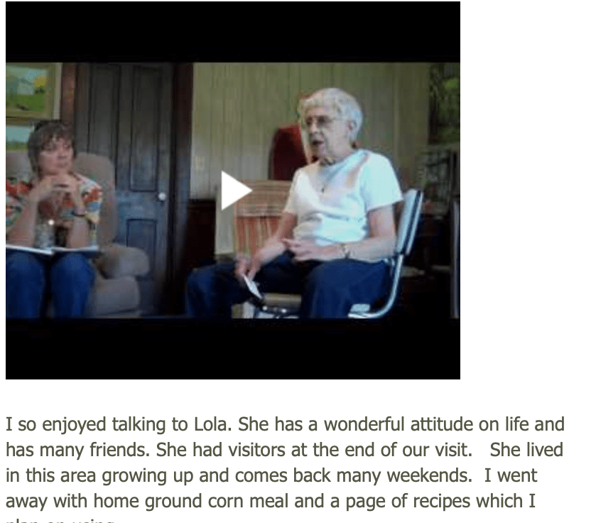 Lola held my attention for over two hours with tales of locals. Paul gave us a tour of his restored 1950 truck and a grinder that had been bought by Lola’s grandfather in the 1870s. Lola gave me a small bag of wheat and corn meal. She even gave me several pages of recipes. I kept it in my refrigerator for over ten years and then had to admit to myself that I was not going to use. Lola had warned me that there would be extra grit due to the grinder. As we left the farm, we met another car coming up the road to be Lola’s next visitor. Locals flock to Lola when she is in the area.