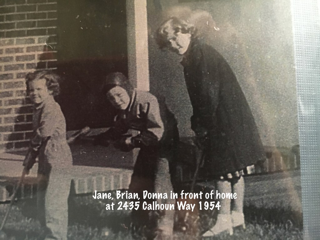 Our new home came with an empty lot and house. Fences and landscaping was up to each homeowner. Uncle Ronnie lived with us at this time and he helped Dad put up the side and back fences. Dad brought in good loam and fertilizer and planted the front and back lawn from seed. Many of our neighbors put in sod but my parents were economizing. Our first morning in the house, we watched a large jack rabbit hop across our backyard. Our backyard was dirt and the houses behind us had not been built yet. There were two empty streets to Sheridan Way, which were finished as was Benjamin Holt.