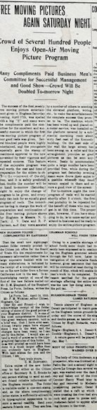 In Hughson on Saturday nights in the summertime, there were outdoor movies. You see, drive-in theaters are not all that modern. A large screen was set up on a vacant lot in the middle of town. Bench seats and bleacher type seats and space at the very back for automobiles to park were available. Of course, it was a silent screen but music accompanied it. During those times when my Grandparent lived in town, the sound of that music was welcome entertainment, even on the times when I did not attend the movie itself. The house was across the street from the back of the screen.