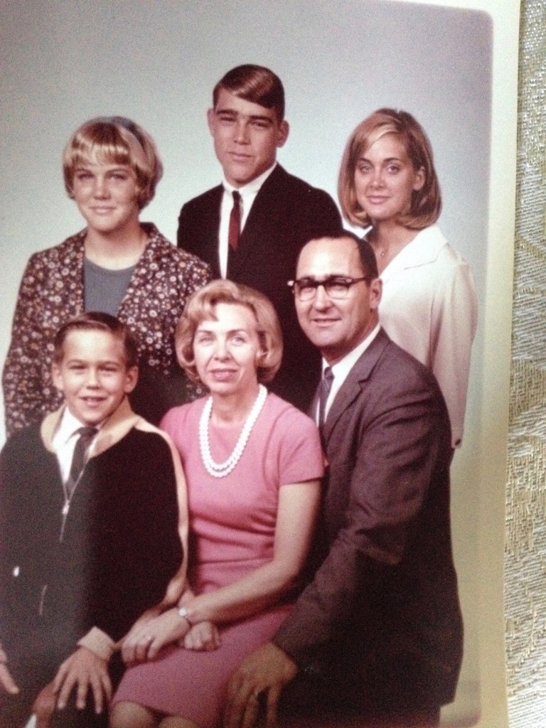Floyd Swagerty family in 1961 at 2435 Calhoun Way, Stockton. Donna, Floyd, Melva in back. Jane Brian, Grant in front. Taken by friend Jonathan Pearce.