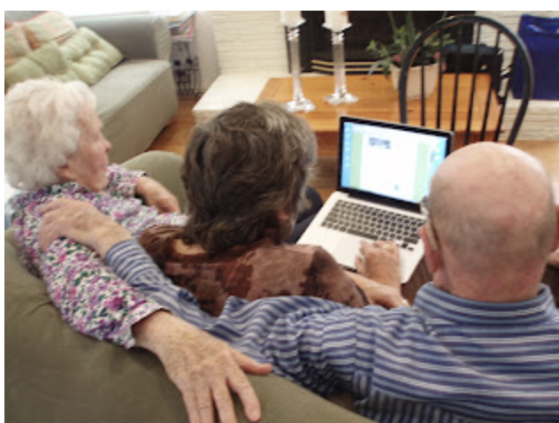 First we had to find a wifi for the computer to show the trip blog. It was a squeeze getting all three of us on the loveseat. I love how these is still so much affection between Clem and Effie. John and I visited them t share various things from our trip. I started with the blog and then I showed them pictures, documents and other artifacts from the trip to our ancestors.