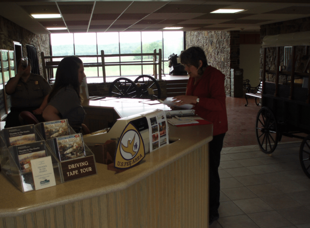 I am at the information center at the Pea Ridge Military Park. The ranger I am talking to is related to the elk horn Tavern people going back seven generations. I can go back seven generations to Thomas Swagerty who was here the same time her people were.