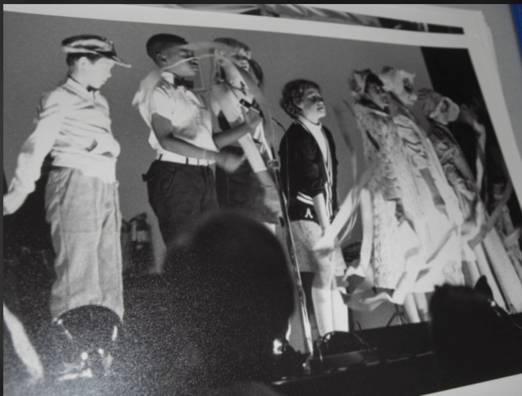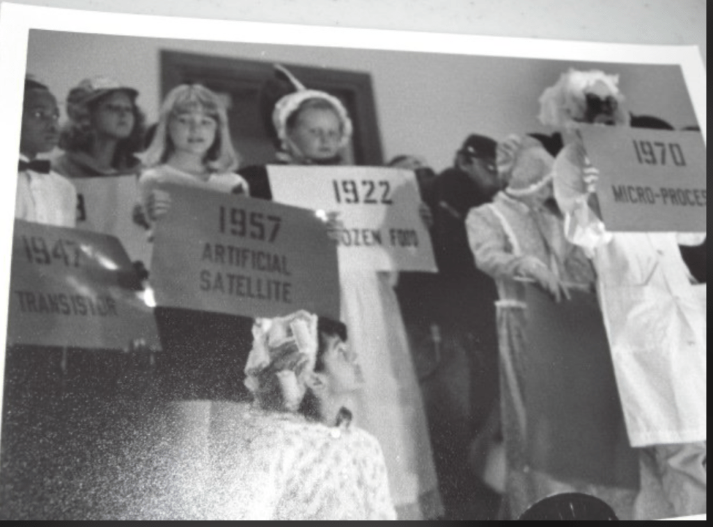 I involved the music teacher from the beginning. He helped me write the play and also was involved with the auditions. He did all he could when he had our class each week. He even put in extra time when he had time available. I only remember two songs for sure. The first song was “Military Industrial Complex” from the musical “Peace Child.” The other was “You Are a Grand Ole Flag” for our grand finale. Each song also had dance moves to add that extra pizzazz.